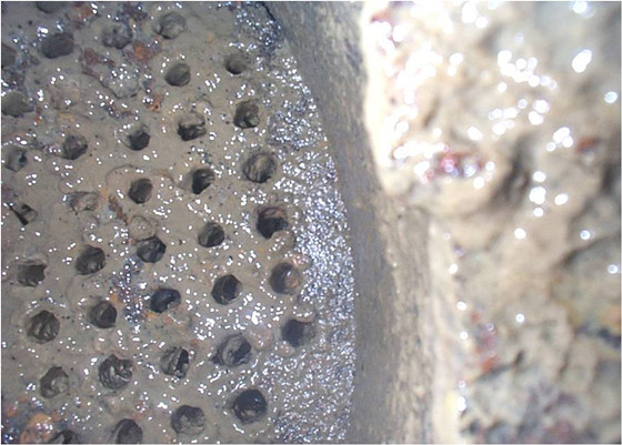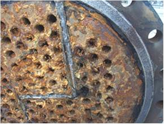 中央空調經(jīng)過長期時間循環(huán)運行后,空調冷凍水、冷卻水系統(tǒng)、制冷主機及風機散熱牌不可避免的出現(xiàn)更為嚴重的沉積物的附著(也就是在系統(tǒng)表面結垢)、微生物的大量滋生粘泥和設備腐蝕等問題。 沒有裝水處理設備會引起管道堵塞、結垢、滋生生物粘泥、軟垢、腐蝕等問題,必需安裝水處理設備才能有效的對空調水進行殺菌滅藻、除垢、防腐蝕處理。以下參數(shù)為裝水處理器前后比較表: 未安裝水處理器前 安裝水處理器后 根據(jù)以上系統(tǒng)面臨問題,結合實際處理經(jīng)驗,推薦以下處理辦法,防止系統(tǒng)壁結垢、生長粘泥軟垢、快速腐蝕等事故的發(fā)生,保證系統(tǒng)的安全、穩(wěn)定、長周期、滿負荷優(yōu)質運行。 u 硬垢形成原因: 冷卻水中富含碳酸氫鈣等不穩(wěn)定鹽類,在換熱管壁受熱分解,即轉變?yōu)樘妓徕}等致密硬垢,規(guī)則沉積在換熱管壁、冷卻塔填料及系統(tǒng)管網(wǎng)等處。 u 硬垢控制: 向循環(huán)水中投加少量的,適應系統(tǒng)水質的阻垢分散劑,即能使硬垢沉積問題得到解決。水處理劑是我公司根據(jù)系統(tǒng)補充水質及生產(chǎn)裝置工藝特點,通過實驗室模擬系統(tǒng)試驗,篩選出最適合阻垢緩蝕劑配方,并提供及時專業(yè)的技術服務,能使硬垢沉積問題得到很好解決。如恒古研發(fā)的HG-711/HG-712/HG-713等系列阻垢緩蝕劑,具有優(yōu)異的阻垢分散性能,循環(huán)水中Ca2+含量在2000mg/L(以CaCO3計)左右穩(wěn)定而不發(fā)生沉積。 冷凝器粘泥巴結垢問題 冷凝器藻類滋生問題 u 粘泥軟垢形成原因: 產(chǎn)粘液微生物代謝、懸浮物、一定的水流速度、換熱管壁粗糙度,四個條件形成粘泥軟垢。后面兩個條件是系統(tǒng)客觀存在,解決辦法只能從微生物和懸浮物著手解決。 u 微生物控制: 篩選適合的殺菌滅藻劑,投入適當?shù)乃幚須⒕M用,使循環(huán)水中微生物含量控制規(guī)定范圍內,將微生物代謝粘液保持允許范圍,防止粘泥軟垢的形成。如康凌研發(fā)的復合型殺菌滅藻劑KL-115(氧化性)/KL-104(非氧化性),殺菌率達99%以上。 u 懸浮物控制: 增設旁流過濾系統(tǒng)(系統(tǒng)濃縮倍率高/懸浮物高時輔助使用),濾除循環(huán)水中懸浮物,控制在規(guī)定范圍內,避免懸浮物與微生物黏液相互作用,在系統(tǒng)內累積而沉積換熱管內,形成軟垢,阻止傳熱,同時形成電化學腐蝕。 冷凝器腐蝕問題 u 腐蝕形成原因: 腐蝕是指通過化學或電化學反應使金屬被消耗破壞的現(xiàn)象。冷卻水中的溶解氧與設備接觸形成腐蝕電池,發(fā)生如下反應,促使金屬不斷溶解而被腐蝕。 u 腐蝕控制: 向循環(huán)水中投加較低量,適應系統(tǒng)水質的復合緩蝕劑,即能使設備腐蝕控制在標準規(guī)定范圍。對于碳鋼不銹鋼系統(tǒng),優(yōu)選阻垢緩蝕劑配方時,即已復配入配方中,能解決設備腐蝕問題,如果系統(tǒng)中有銅設備,則應另添加緩蝕劑,如恒古HG-301系列。 |
